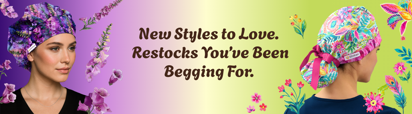 Sleek stylish scrub hats with a tie-back to finish off the perfect fit