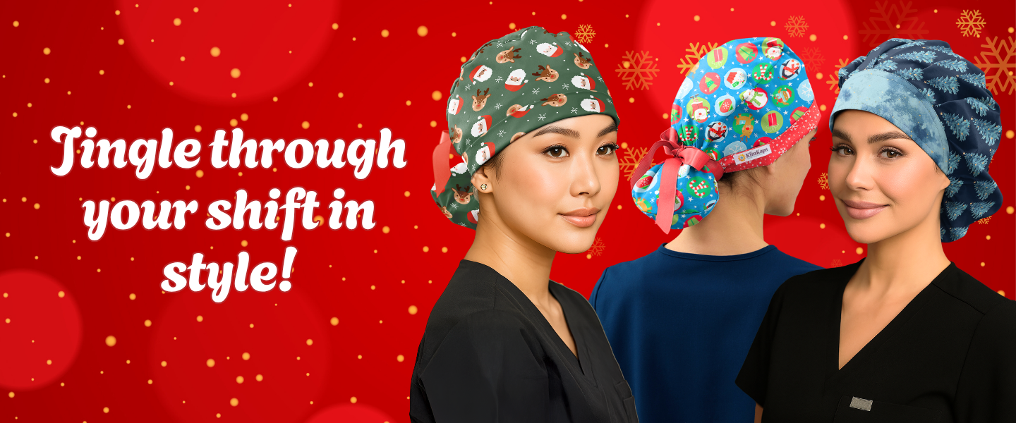 Sleek stylish scrub hats with a tie-back to finish off the perfect fit