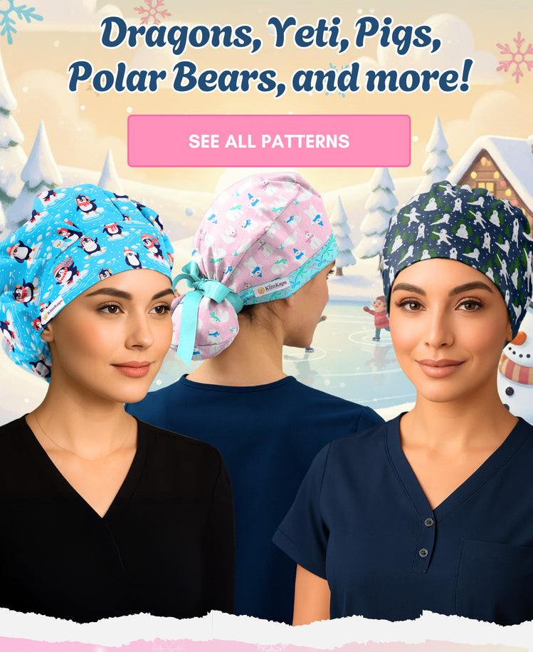 Sleek stylish scrub hats with a tie-back to finish off the perfect fit
