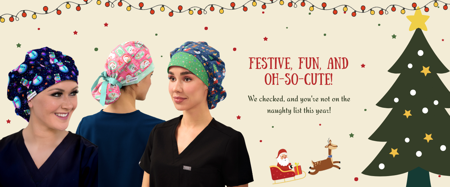 Sleek stylish scrub hats with a tie-back to finish off the perfect fit