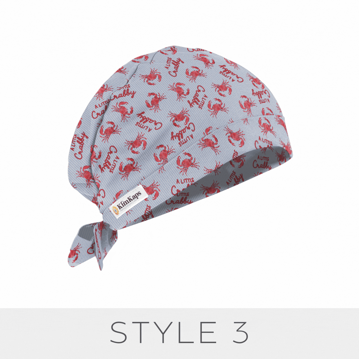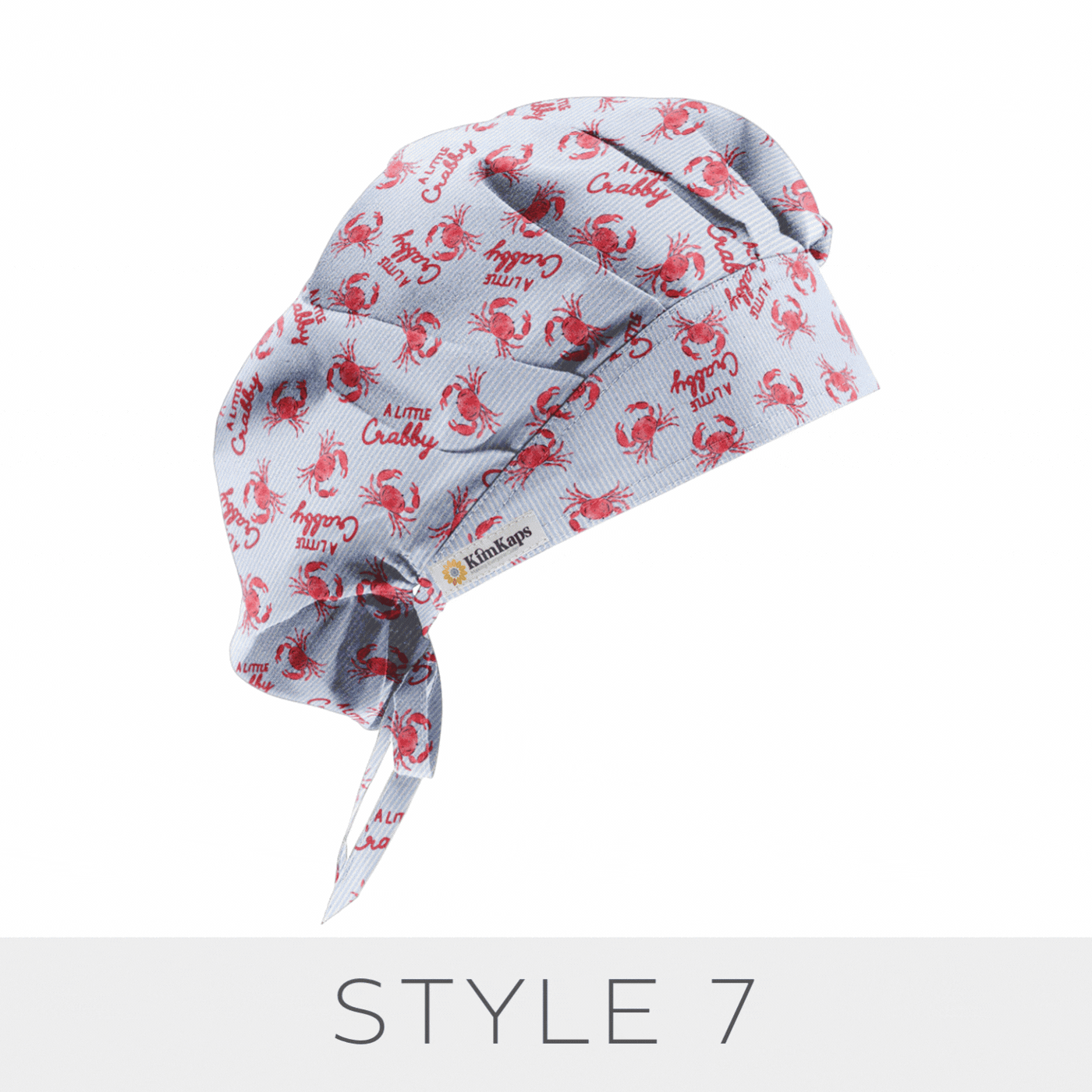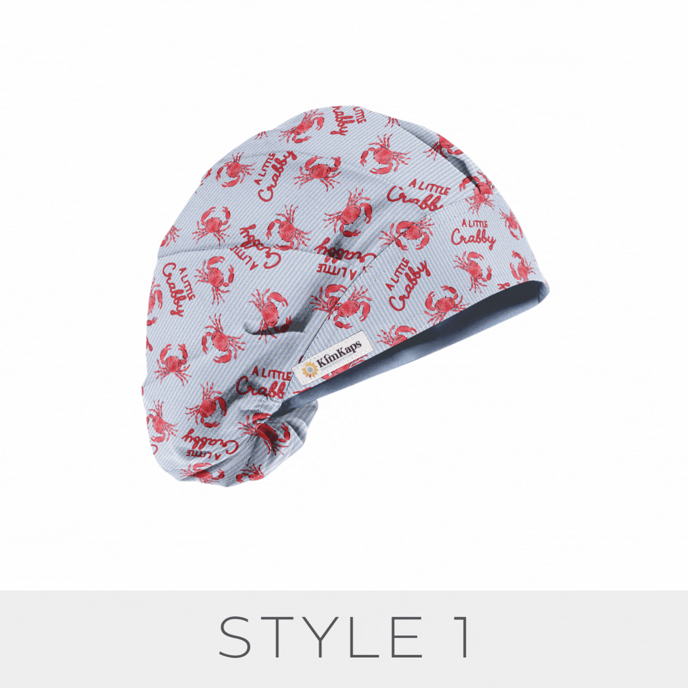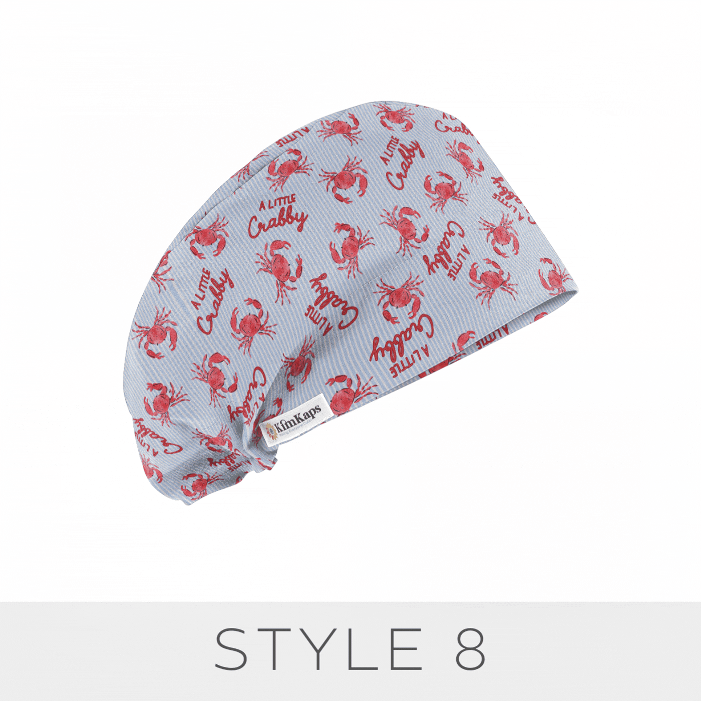 These scrub caps with crabs are made in the USA of 100% cotton, and are designed to keep you cute and comfortable all shift long.