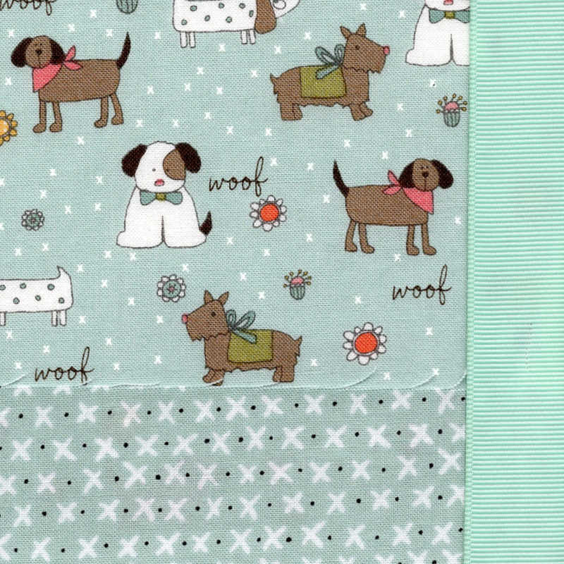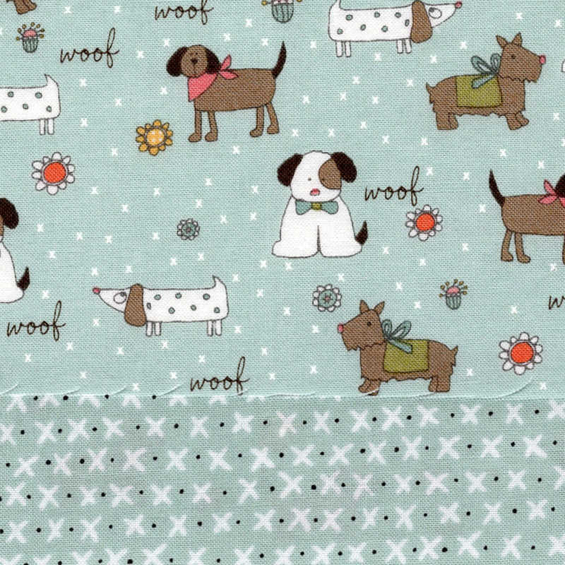 Cute little doggies are paired with a fun xo coordinate on this adorable dog scrub cap! We added mint green ribbons to Style 6.