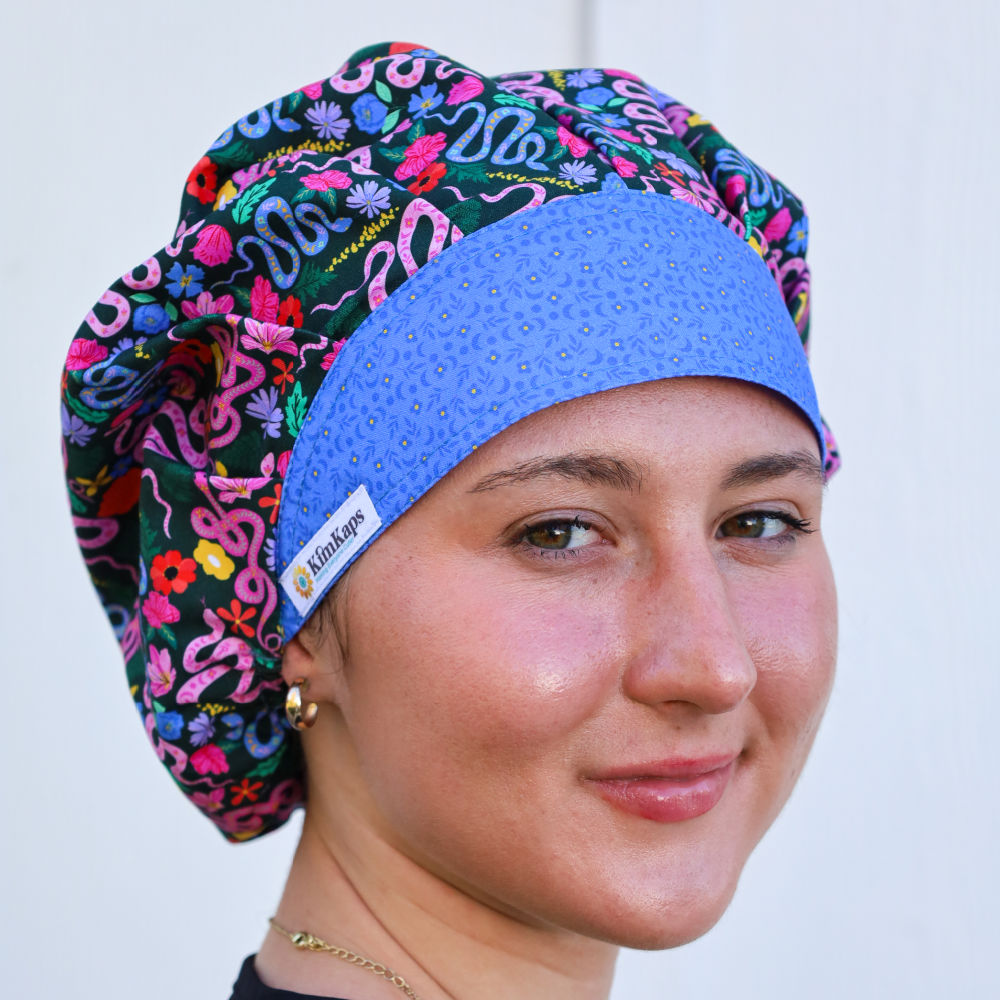 These cute snake scrub hats are made in the USA of 100% cotton, and are designed to keep you cute and comfortable all shift long.