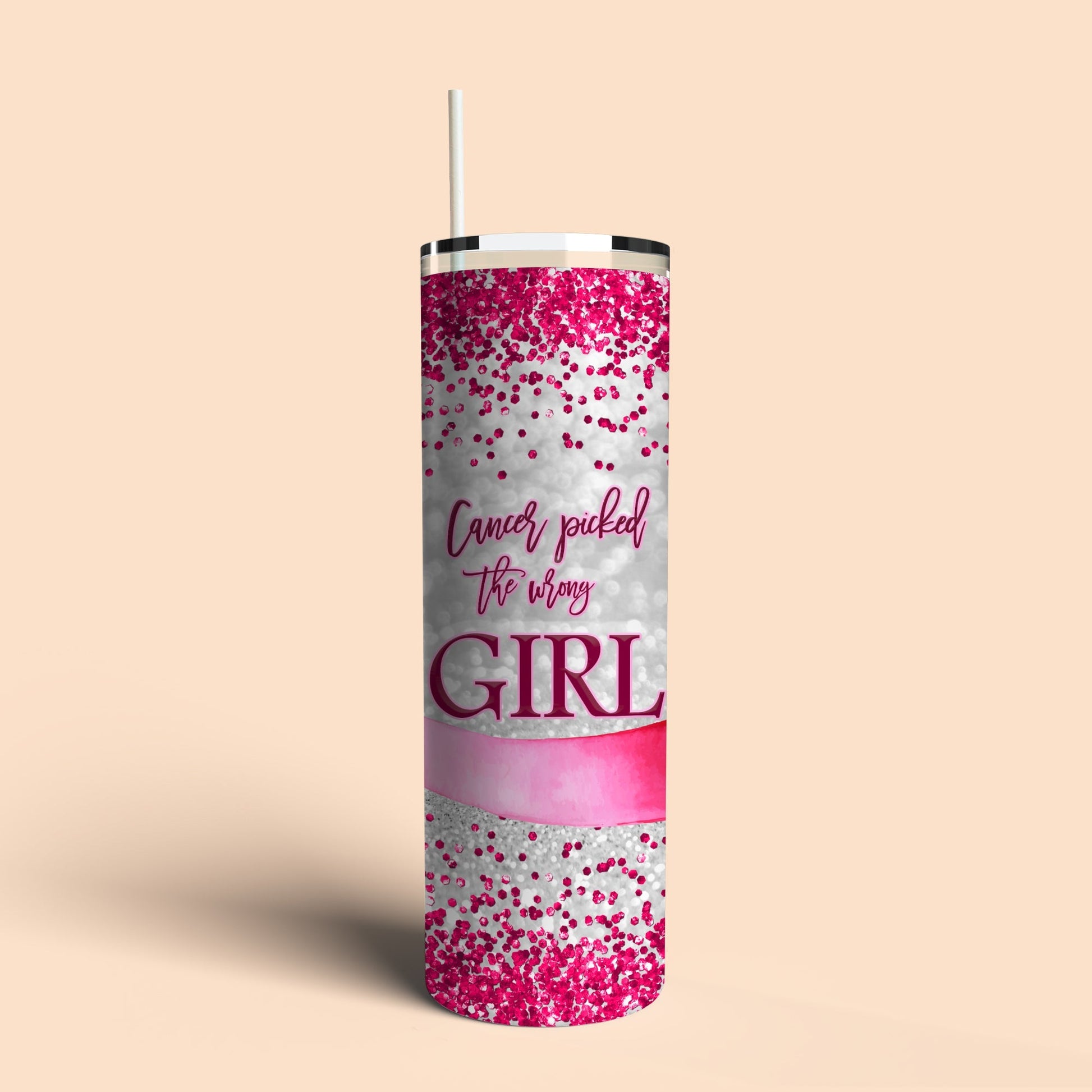 Cancer picked the wrong girl! This tumbler is included in our KimKaps Cares Breast Cancer partnership, which donates a portion of proceeds to help rural women get mobile mammogram screening. Free personalization makes it even more meaningful!