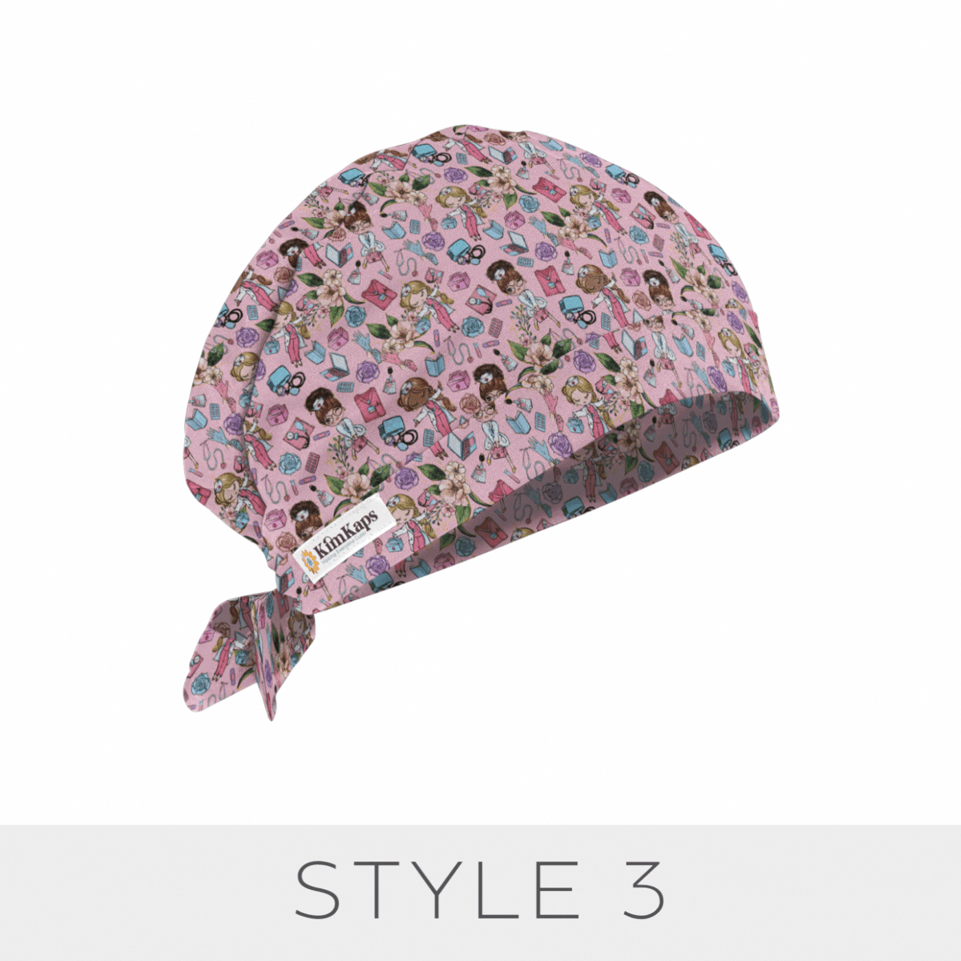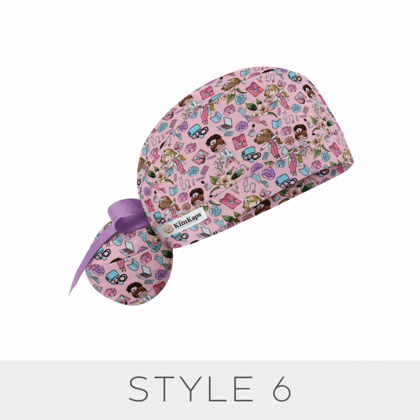 You're queen of the charts (and everything else on your shift), and this scrub cap's for you! We added purple ribbons to tie your ponytail. Exclusive to KimKaps!