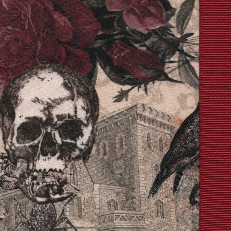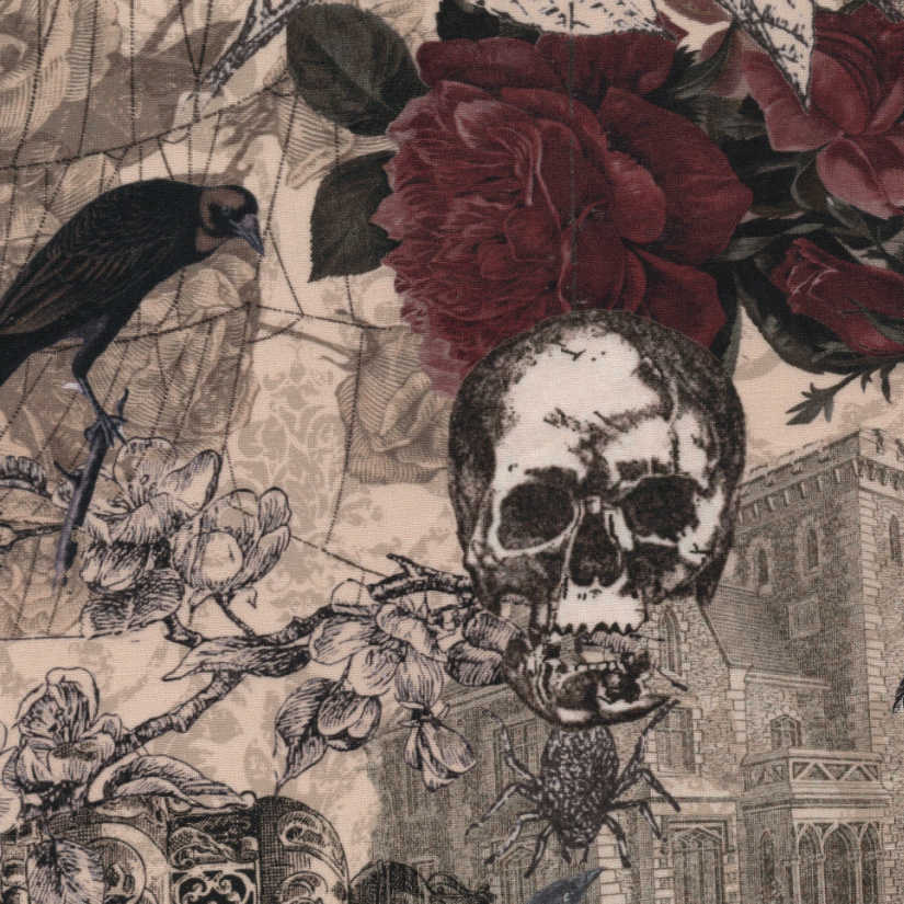 Chilling and elegant, this limited-edition gothic Halloween scrub c ap features skulls, roses, ravens, headstones, haunted houses, and more.