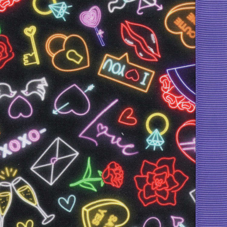 This cap glows with neon Valentine icons — roses, rings, love letters, and candy hearts — all shining bright against a midnight-black background. It’s giving romance, a touch of mischief, and just the right amount of sparkle.