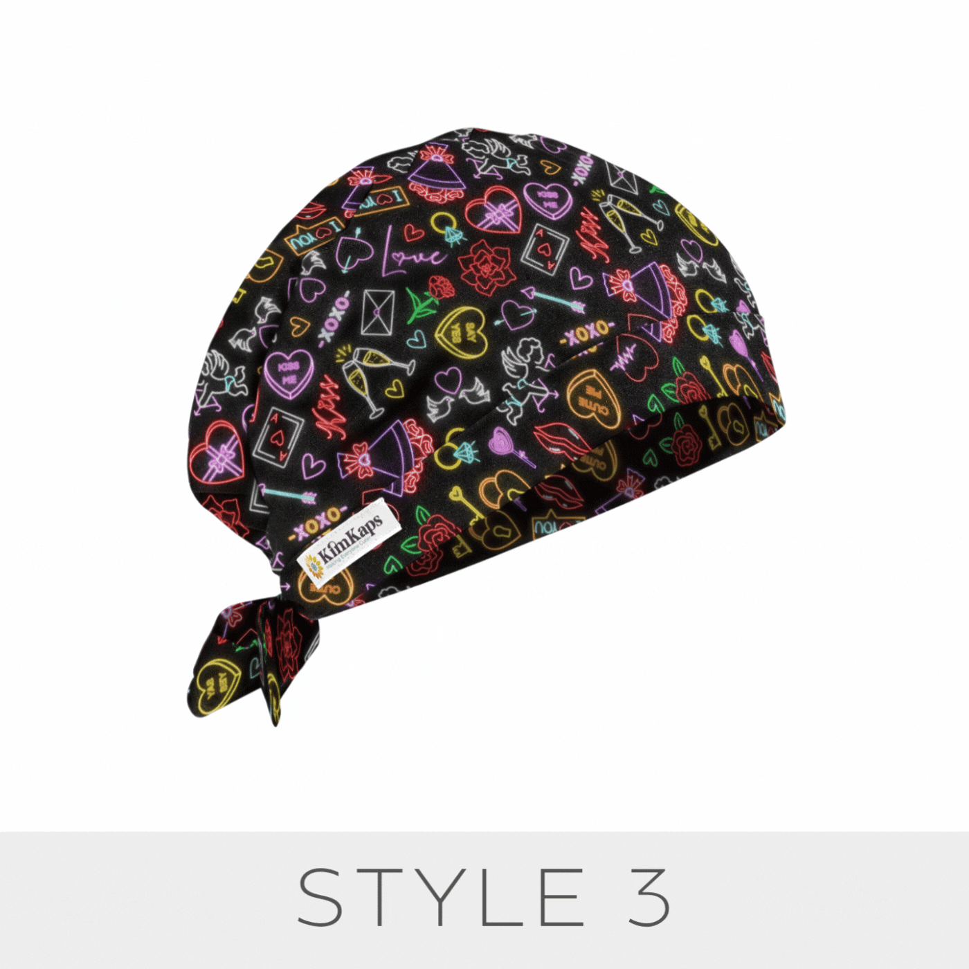 These fun Valentine scrub caps are made in the USA of 100% cotton, and are designed to keep you cute and comfortable all shift long.