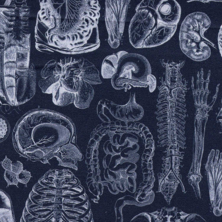 Deep Structure takes its inspiration straight from the pages of vintage anatomy books — crisp white linework, intricate medical sketches, and a deep navy backdrop that’s pure sophistication.