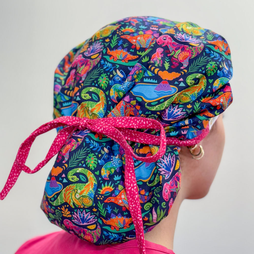 These dinosaur scrub hats are made in the USA of 100% cotton, and are designed to keep you cute and comfortable all shift long.