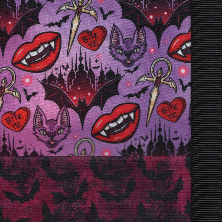 Bite Me features playful vampire bats, sharp little fangs, and hearts stamped with “Bite Me” for a look that’s equal parts spooky and sassy. It’s Halloween fun with just the right amount of attitude.