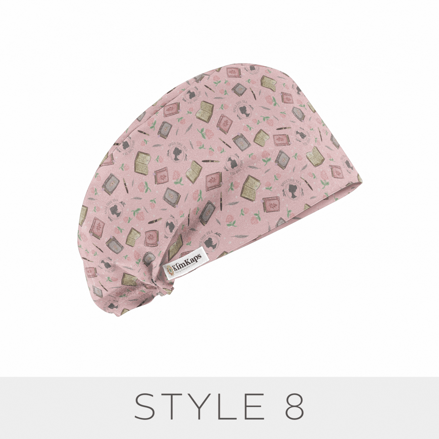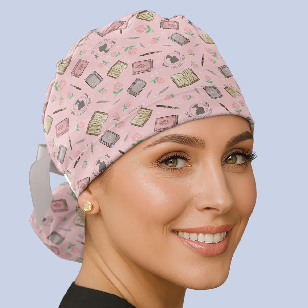 These floral and book-themed scrub caps are made in the USA of 100% cotton, and are designed to keep you cute and comfortable all shift long.