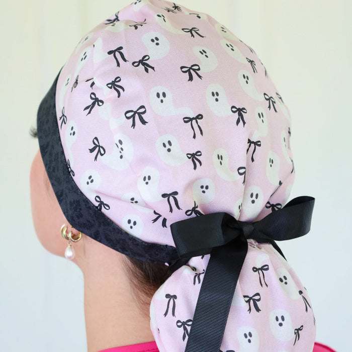 These Halloween ghost scrub hats are made in the USA of 100% cotton, and are designed to keep you cute and comfortable all shift long.