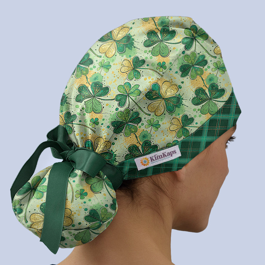 These St. Patrick's Day scrub caps with shamrocks are made in the USA of 100% cotton, and are designed to keep you cute and comfortable all shift long.