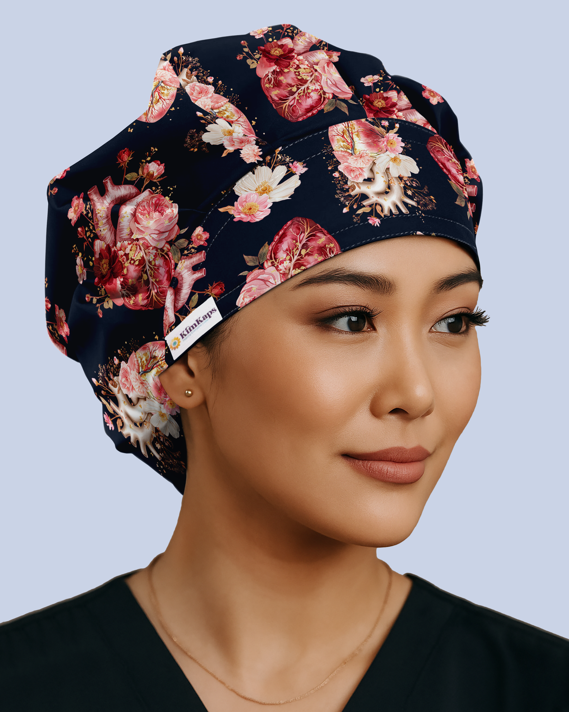 Perfect for cardiology pros, or anyone who loves the beauty of the heart! These scrub caps with anatomical hearts and flowers are your new faves!