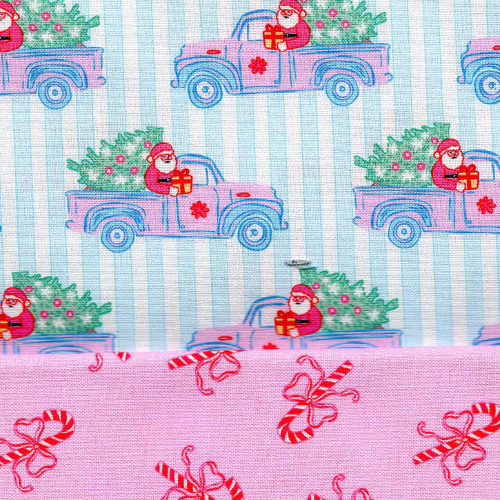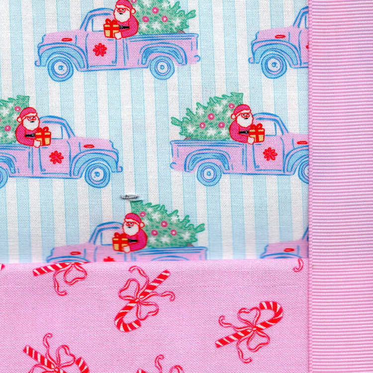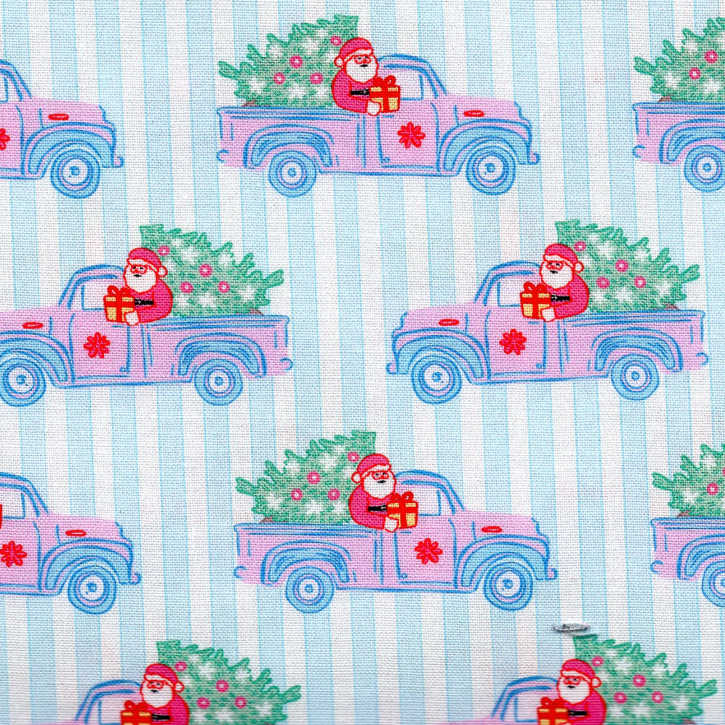 Santa's substituting the cutest pink truck for his sled in this darling scrub cap!