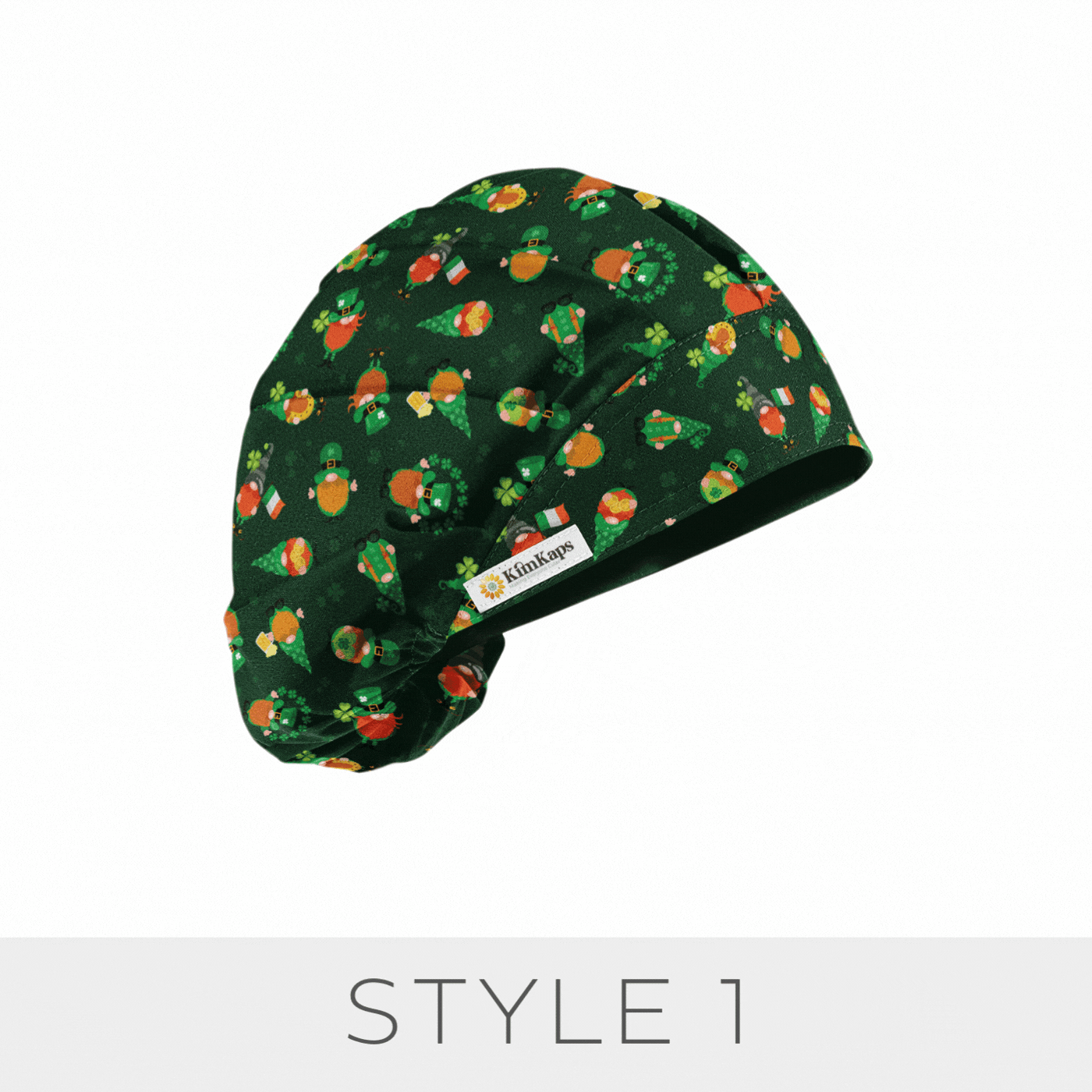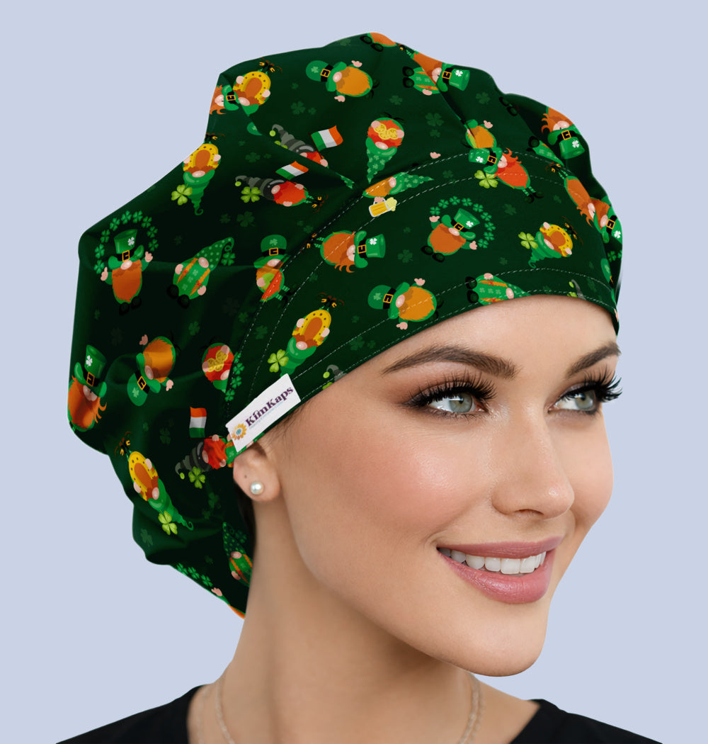 These St. Patrick's Day scrub caps with gnomes are made in the USA of 100% cotton, and are designed to keep you cute and comfortable all shift long.