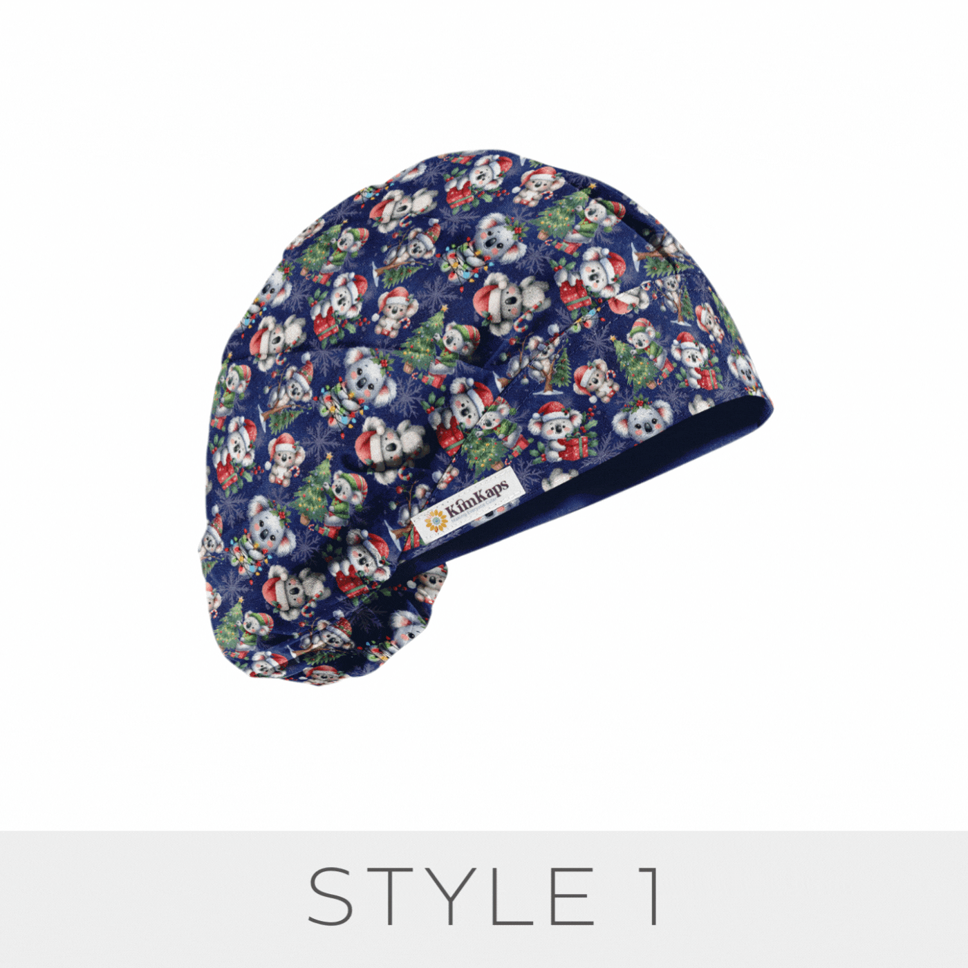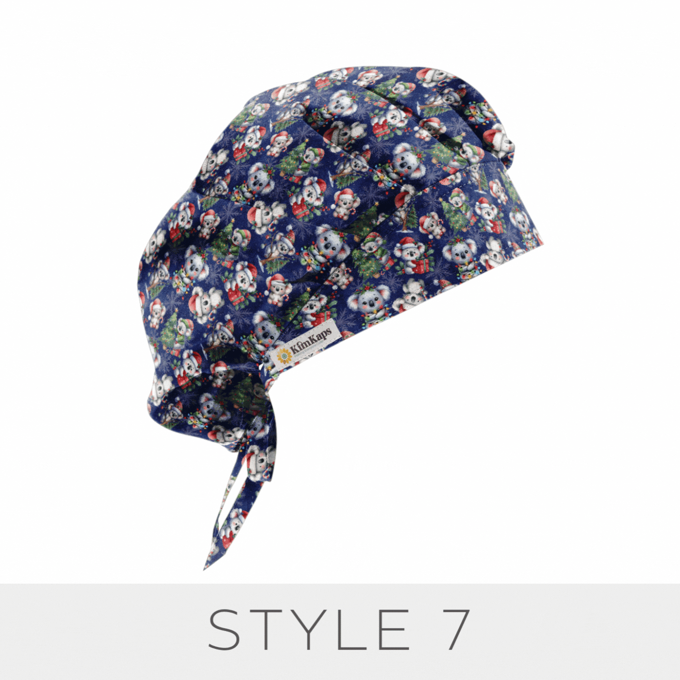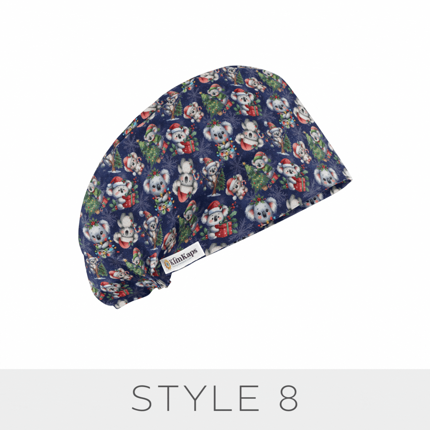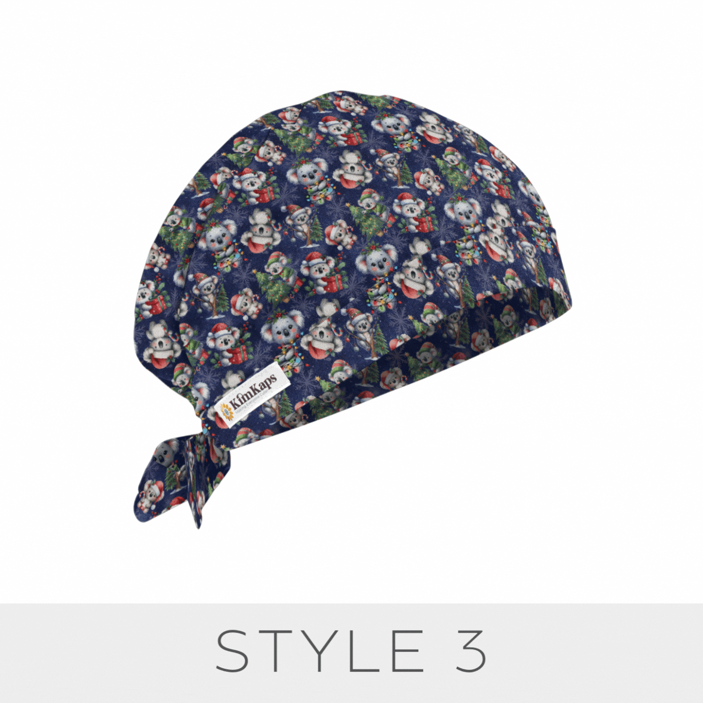 The cutest koalas are all decked out for Christmas on this adorable scrub hat!