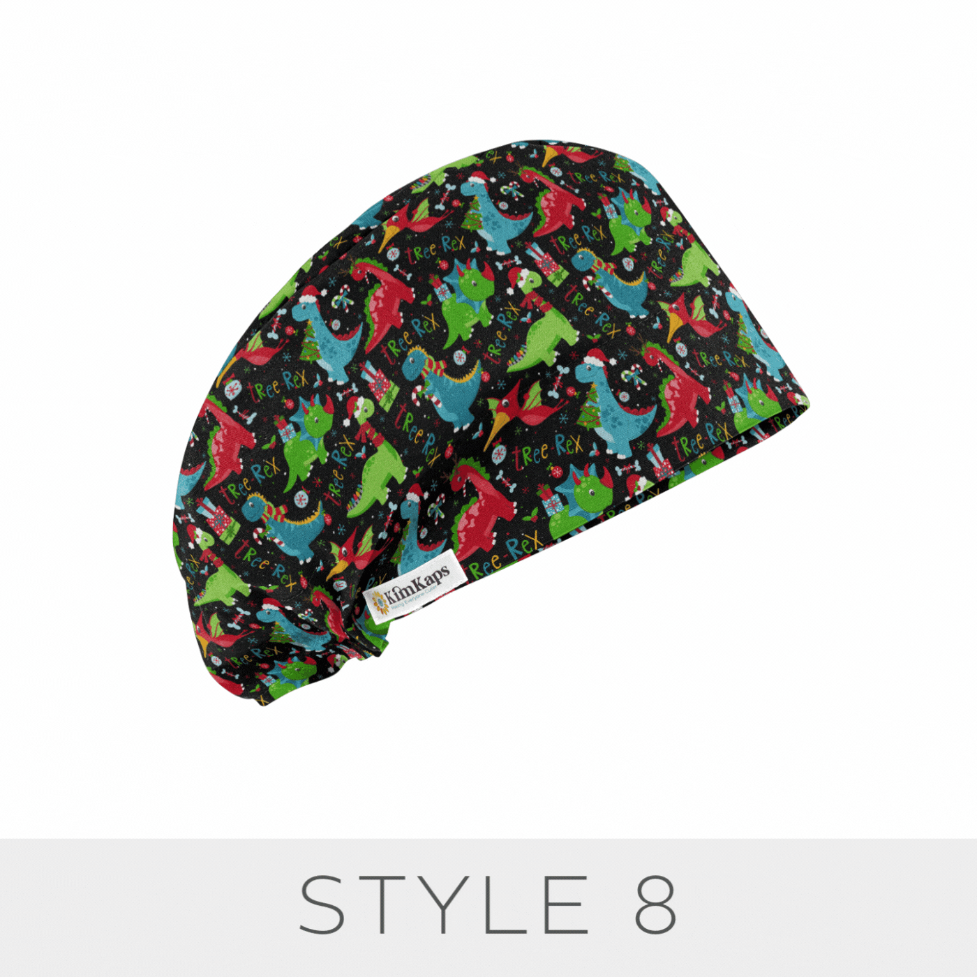 These exclusive dinosaur Christmas scrub caps are made in the USA of 100% cotton, and are designed to keep you cute and comfortable all shift long.