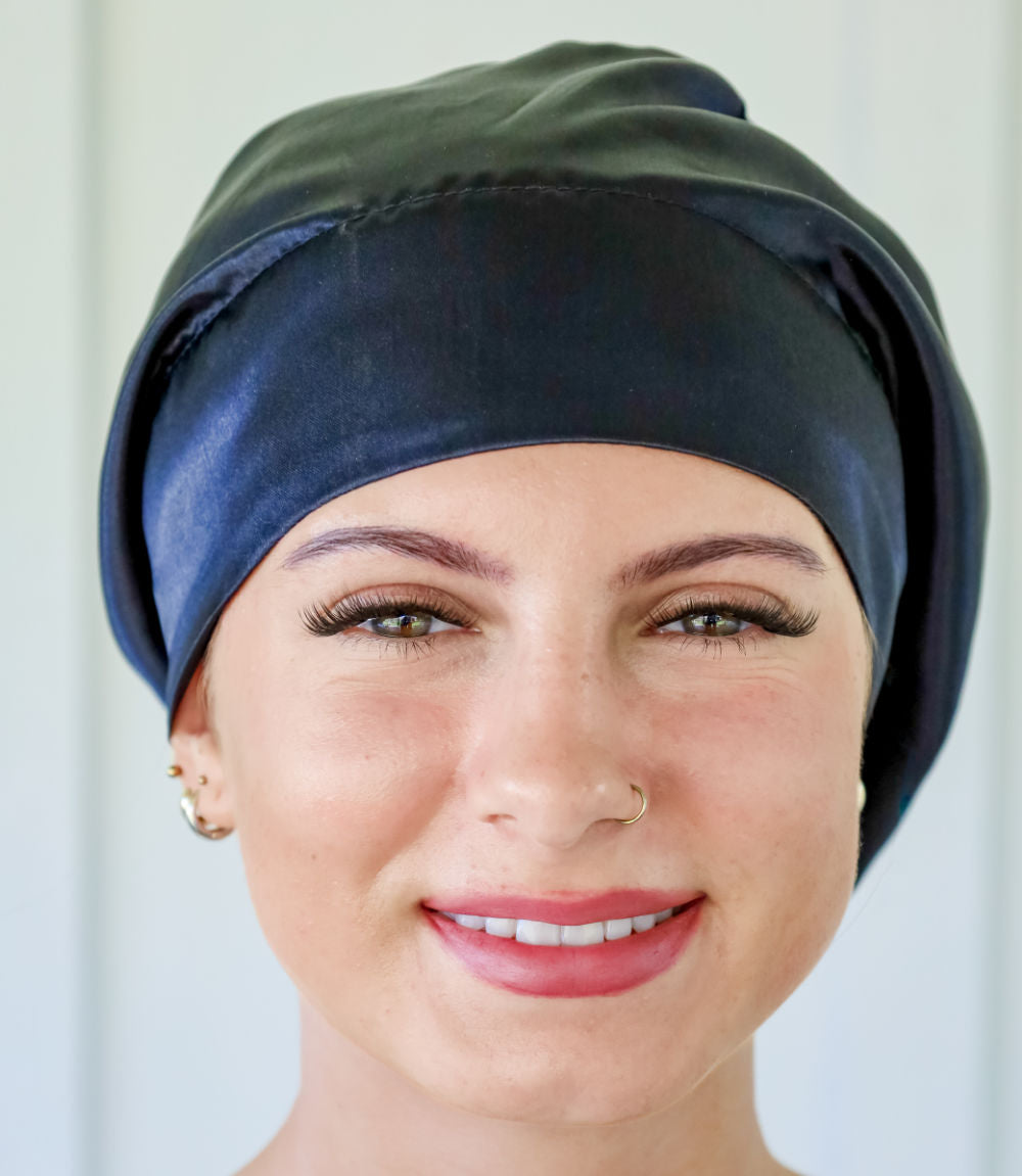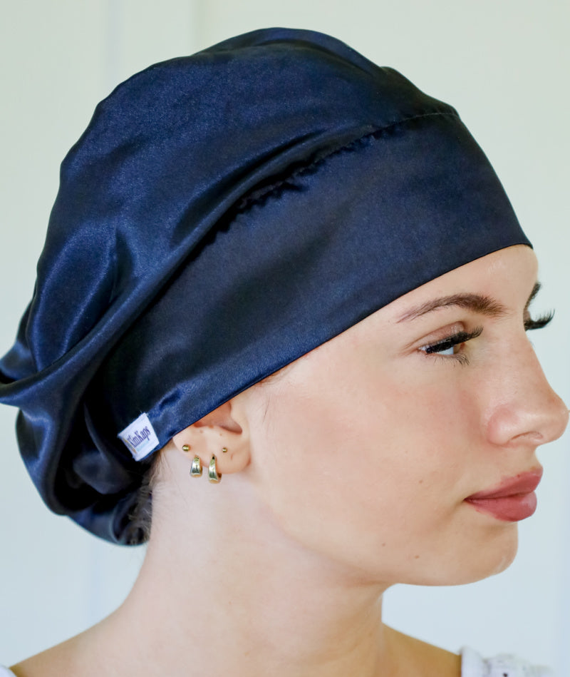 Only in our satin fabric! Solid navy satin available in Satin Style 1, Satin Style 6, and Satin Style 8. A KimKaps exclusive!