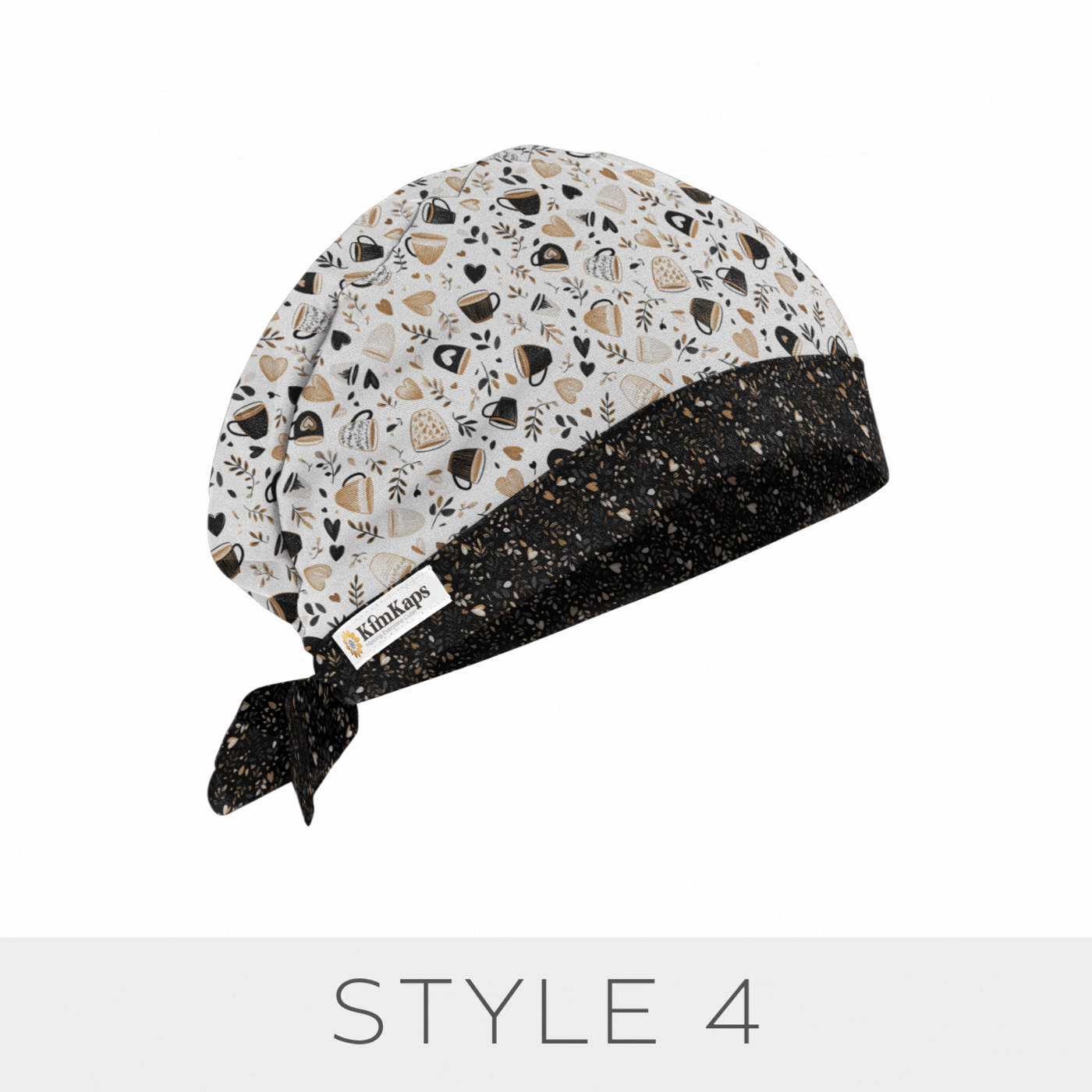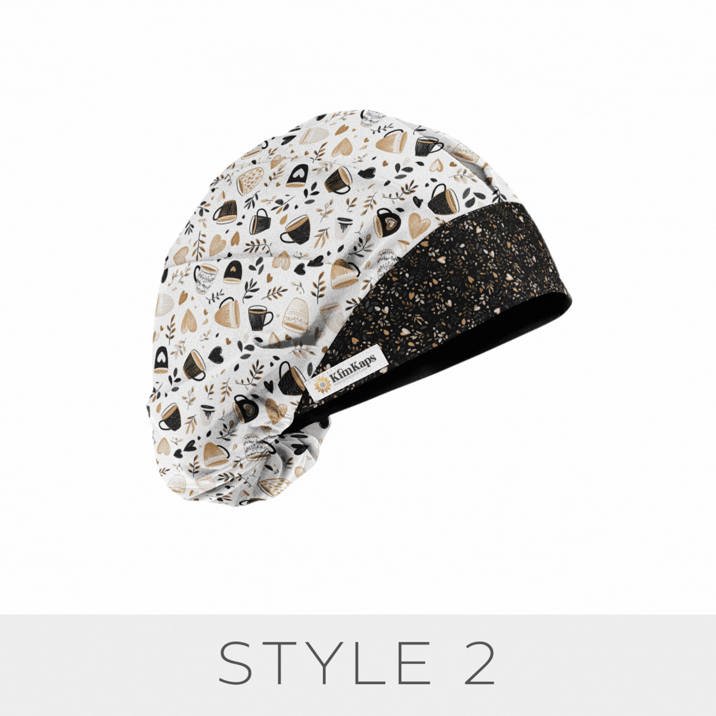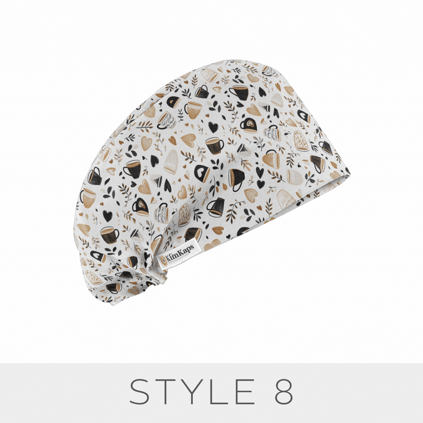 These scrub caps with coffee are made in the USA of 100% cotton, and are designed to keep you cute and comfortable all shift long.