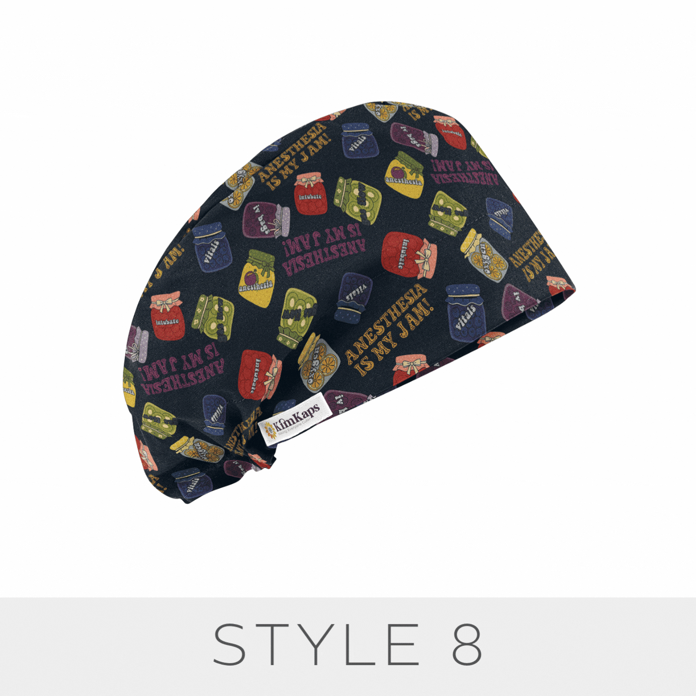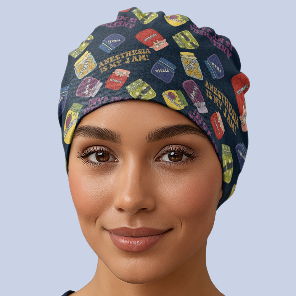 These fun anesthesia scrub caps are made in the USA of 100% cotton, and are designed to keep you cute and comfortable all shift long.