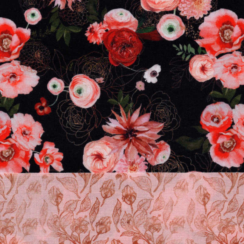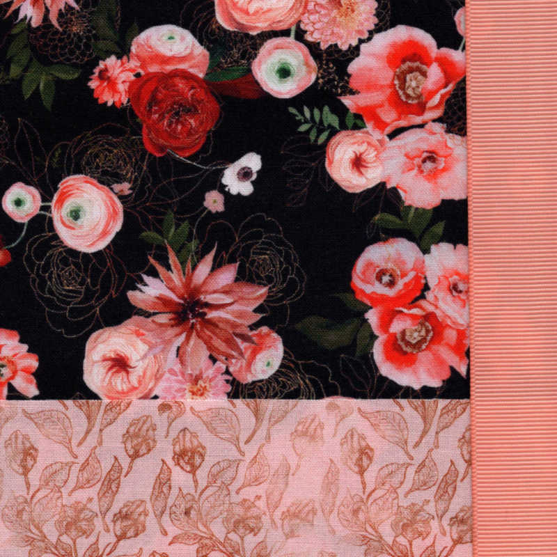 Gorgeous florals on a dark background make for a dramatic scrub cap! We added a beautiful peach coordinate, and peach ribbons ribbons to Style 6, with coral ribbons on Style 10.