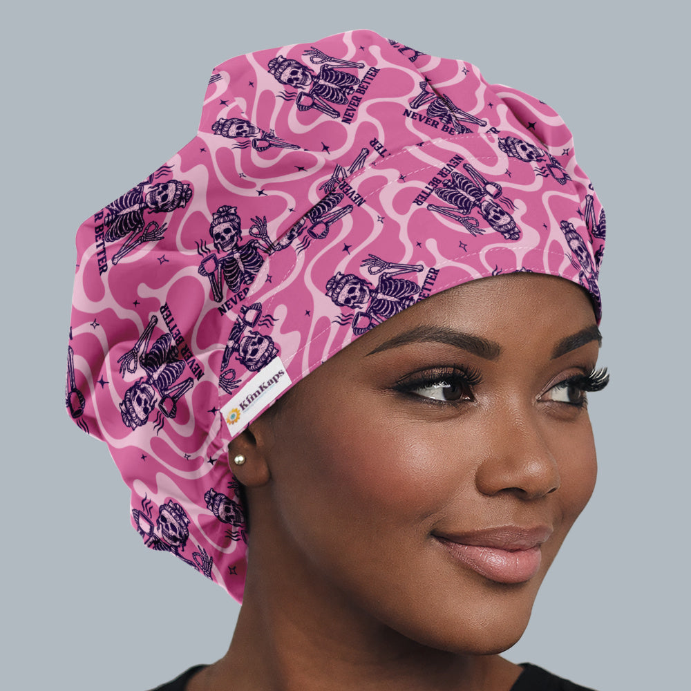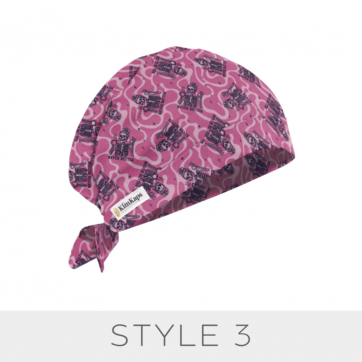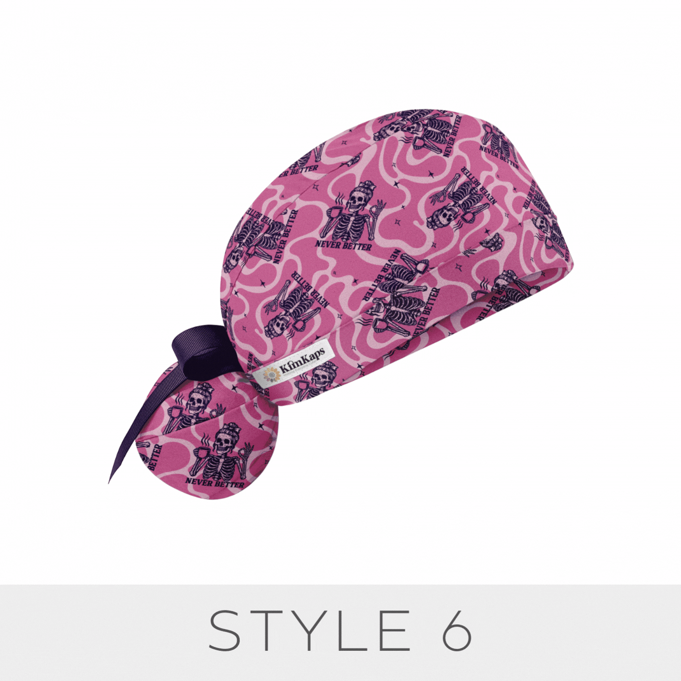 These sassy skeleton scrub caps are made in the USA of 100% cotton, and are designed to keep you cute and comfortable all shift long.