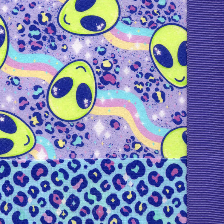 Retro aliens and psychedelic leopard print? Believe it! It works in the most fabulous way possible! We added purple ribbons to tie your ponytail for Style 6. Only at KimKaps!