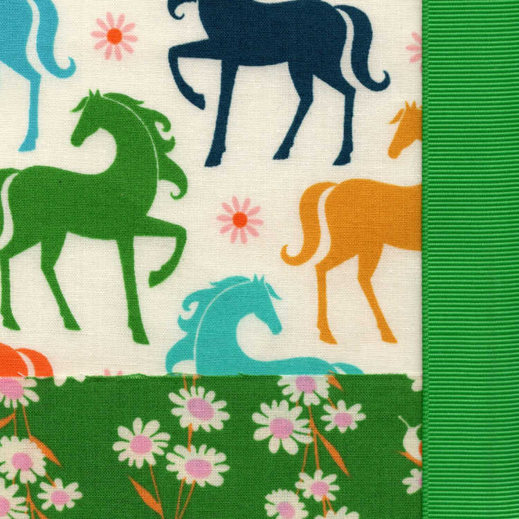 Limited edition! These colorful horses can't help but prance with the darling floral coordinate! We added green ribbons for Style 6-2.