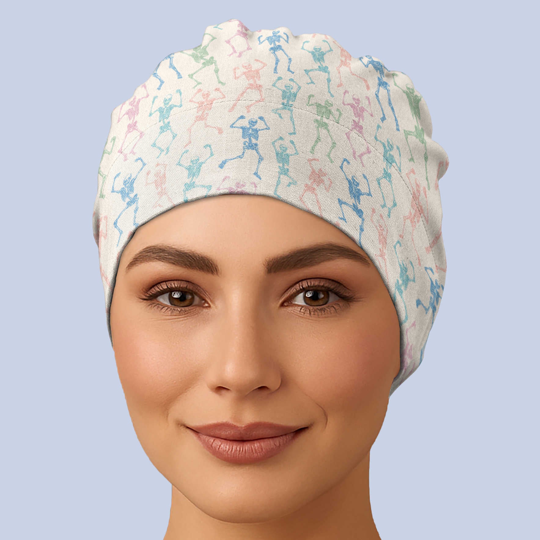 These exclusive skeleton scrub caps are made in the USA of 100% cotton, and are designed to keep you cute and comfortable all shift long.