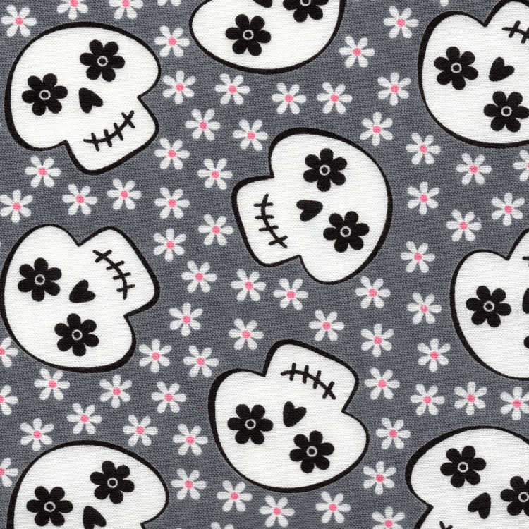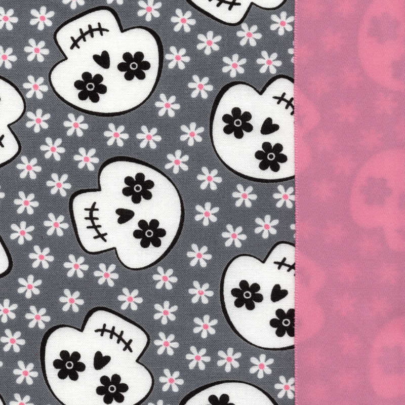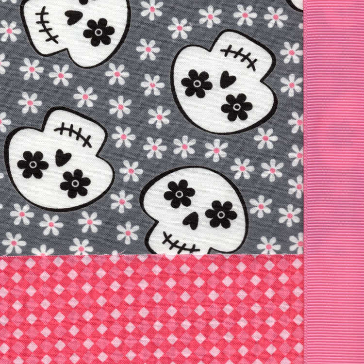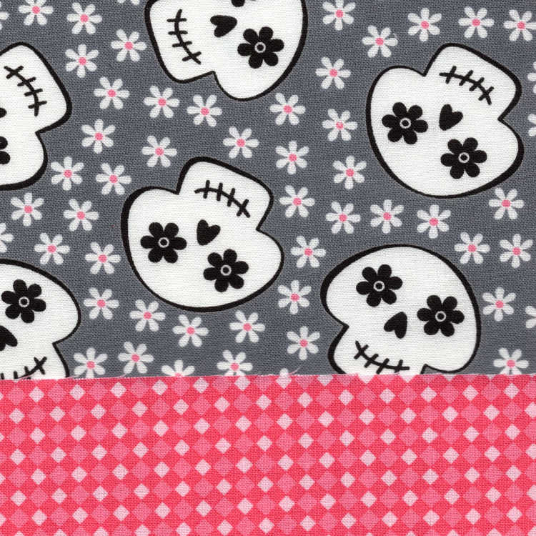 Cutie skulls and daisies are paired with a fun pink checked coordinate. We added pink ribbons for Style 6 and 10. So adorable!