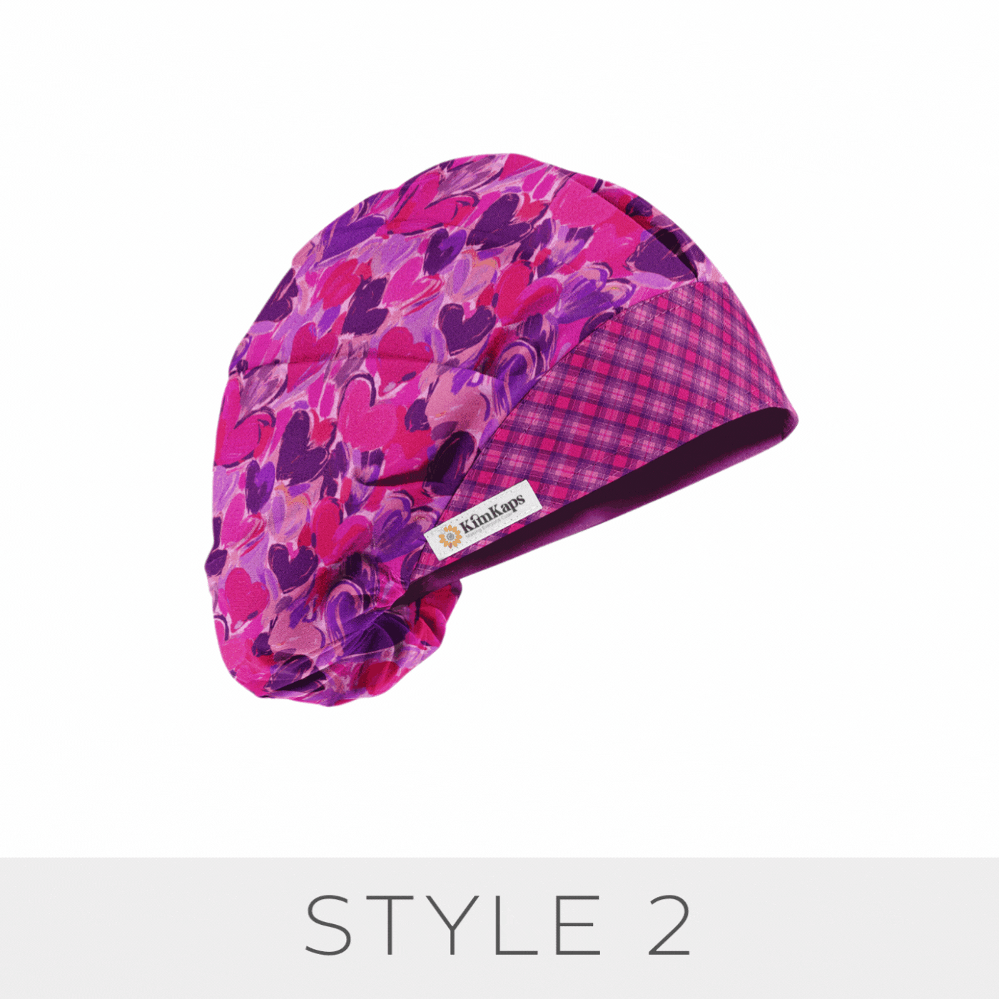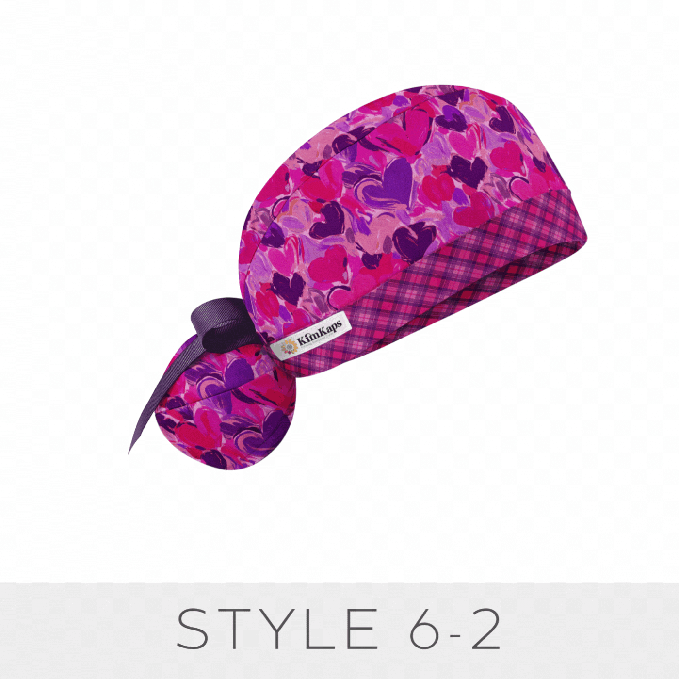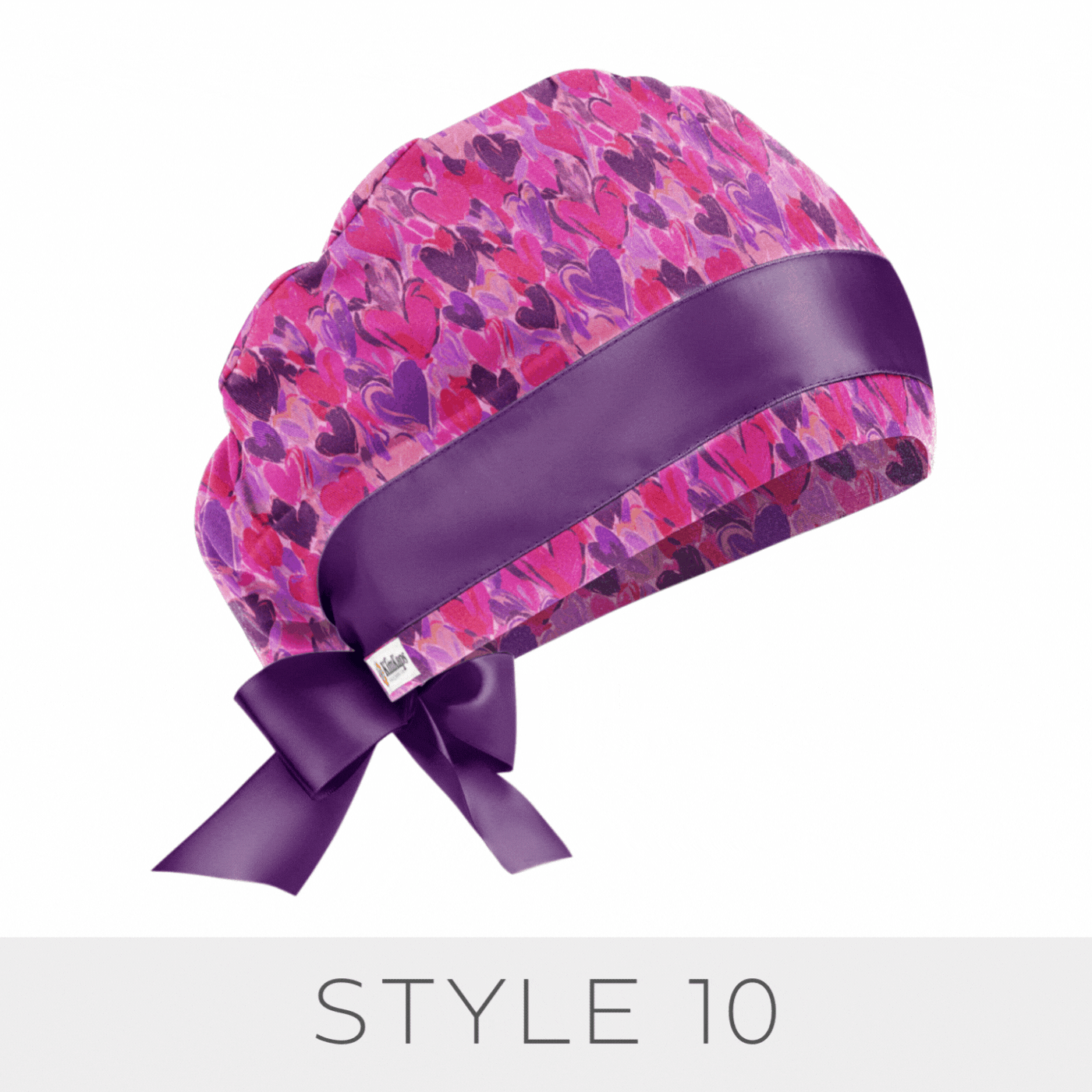 We added dusky purple ribbons to Style 6 and royal purple to Style 10. These scrub caps are made in the USA of 100% cotton, and are designed to keep you cute and comfortable all shift long.
