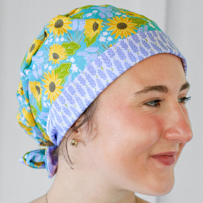 These sunflower scrub hats are made in the USA of 100% cotton, and are designed to keep you cute and comfortable all shift long.
