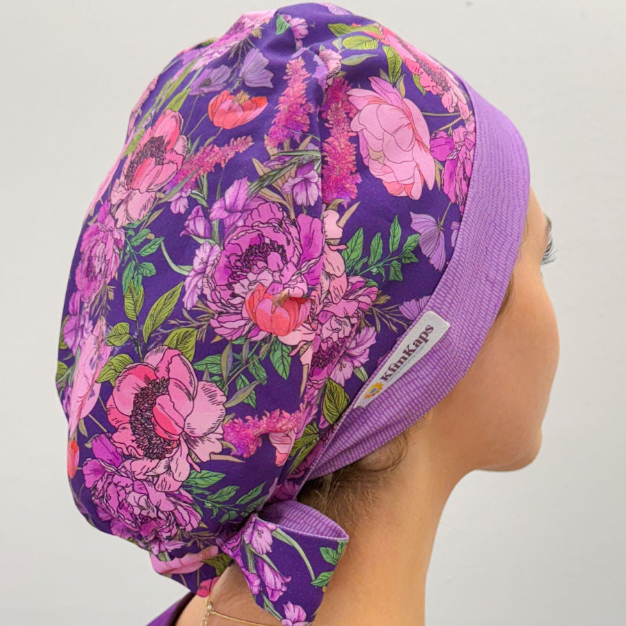 Beautiful purple and pink florals are paired with a lavender coordinate, ready to bloom on your cute head! We added lavender ribbons for Style 6, and a deep rose for Style 10.
